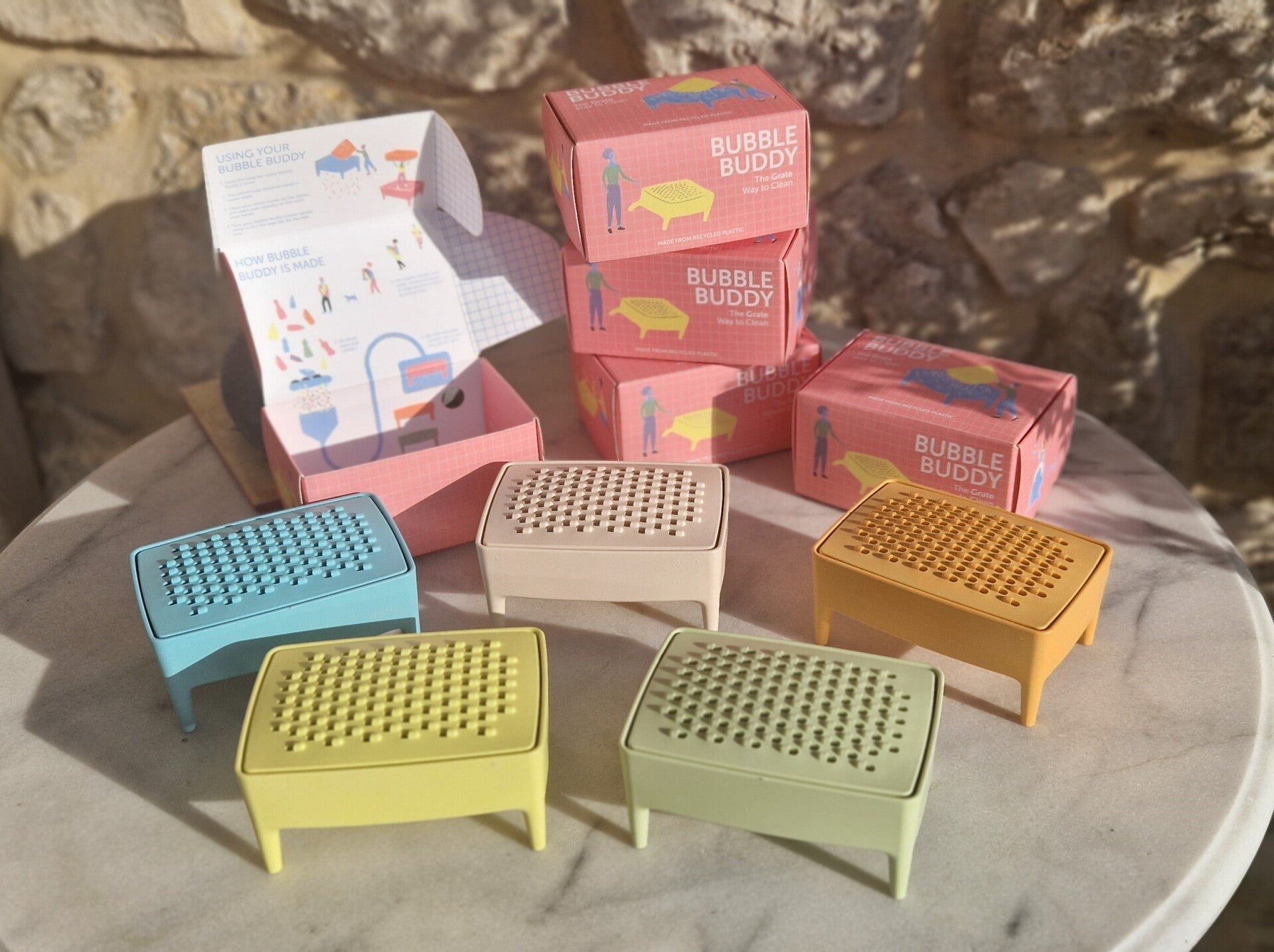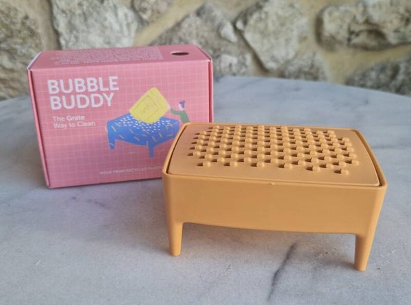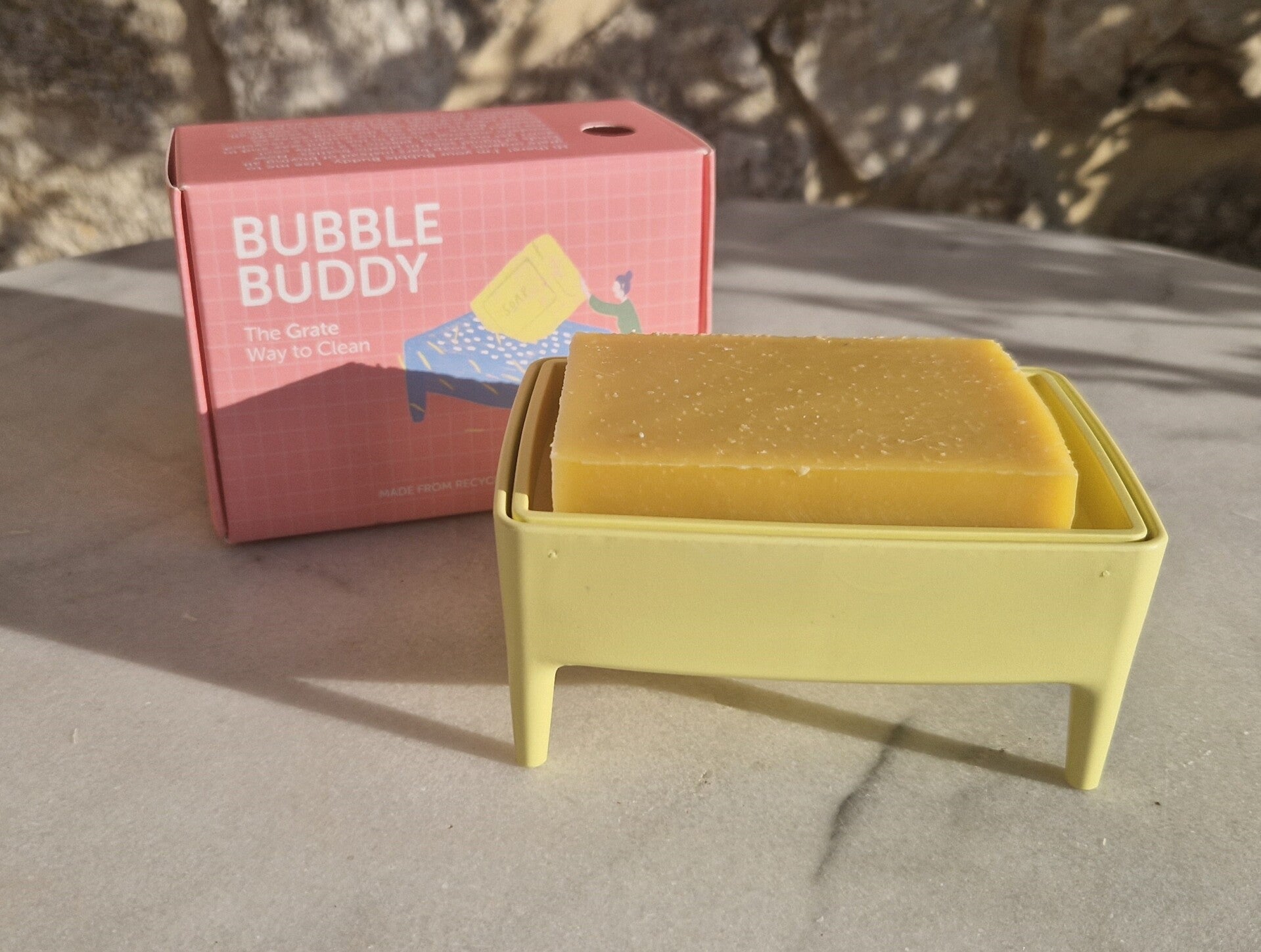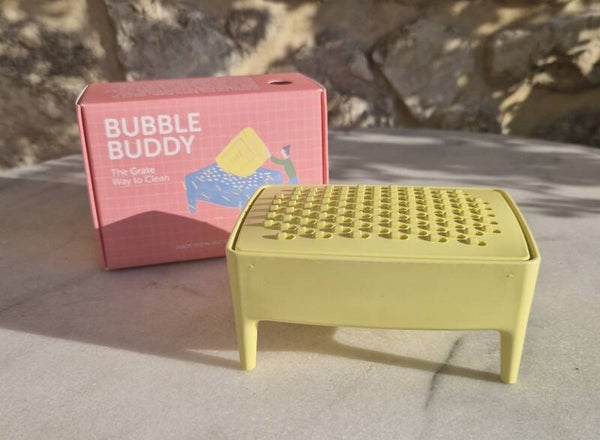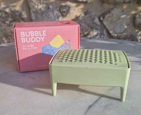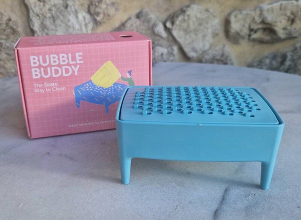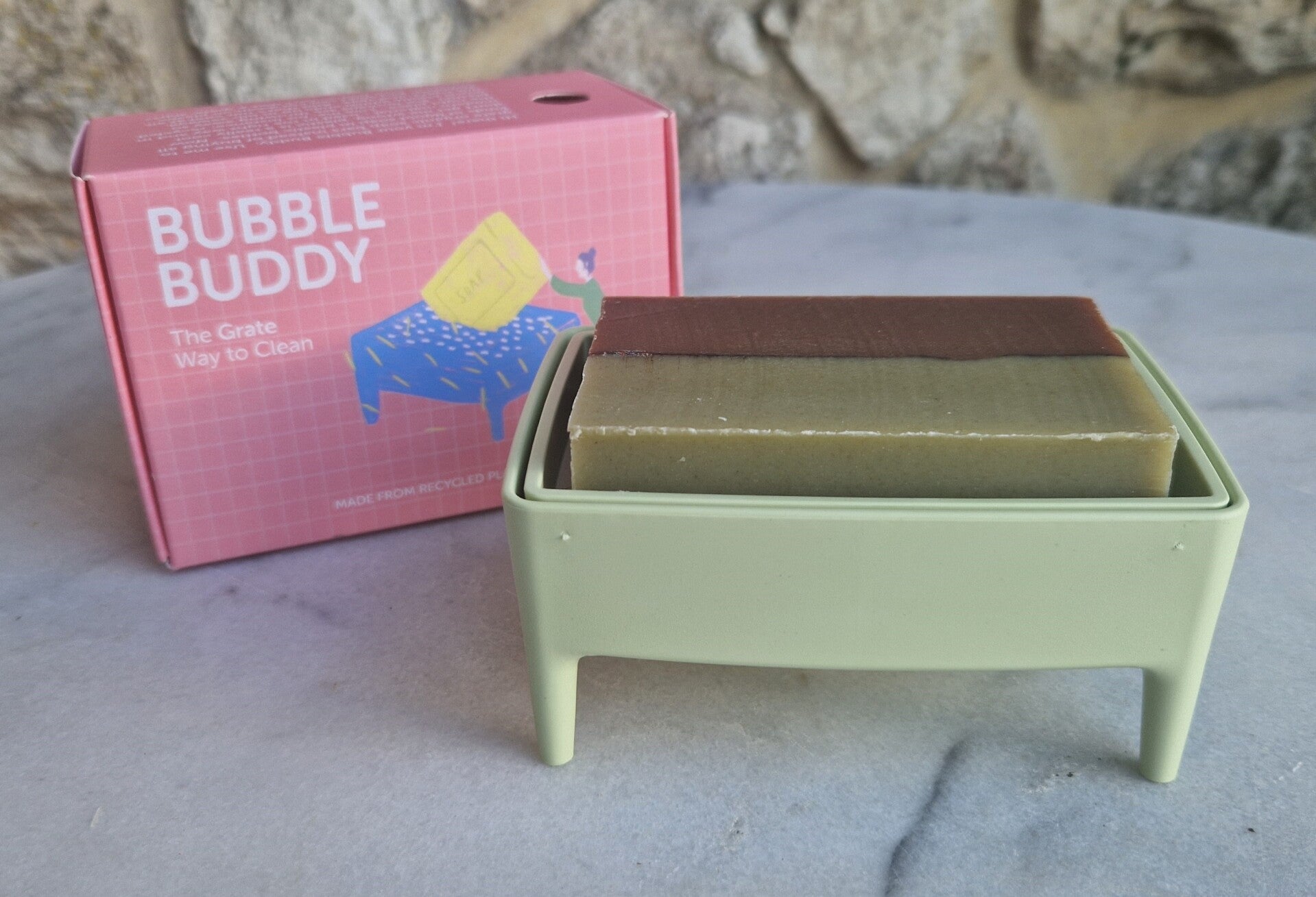 De bubble buddy kan je gebruiken om de zeep te laten uitlekken, drogen en bewaren en als rasp om sop te maken of van vaste zeep vloeibare zeep te maken.