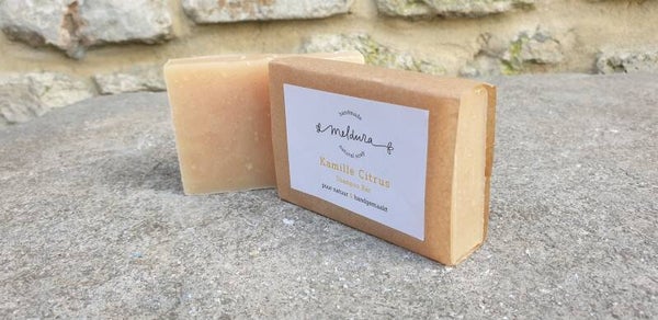 De Kamille Citrus Shampoo Bar bevat naast een kamillehydrolaat en kokosmelk ook nog een olijfoliemaceraat van kamille, brandnetel en calendula. Kamille heeft anti-inflammatoire eigenschappen en calendula weet een jeukende en geïrriteerde hoofdhuid te kalmeren. Brandnetel promoot dan weer sterk en gezond haar en werkt goed bij vet haar en roos. Daarnaast geven de etherische oliën van citrusvruchten (zoete sinaasappel, citroen en citroengras) deze zeep een heerlijk frisse geur. De combinatie van al deze ingrediënten maakt je haar schoon, glanzend, veerkrachtig en fris. Deze zeep laat blonde lokken oplichten en geeft donkere lokken extra glans. Naast een weldaad voor het haar is het ook een uitstekende zeep voor de huid.