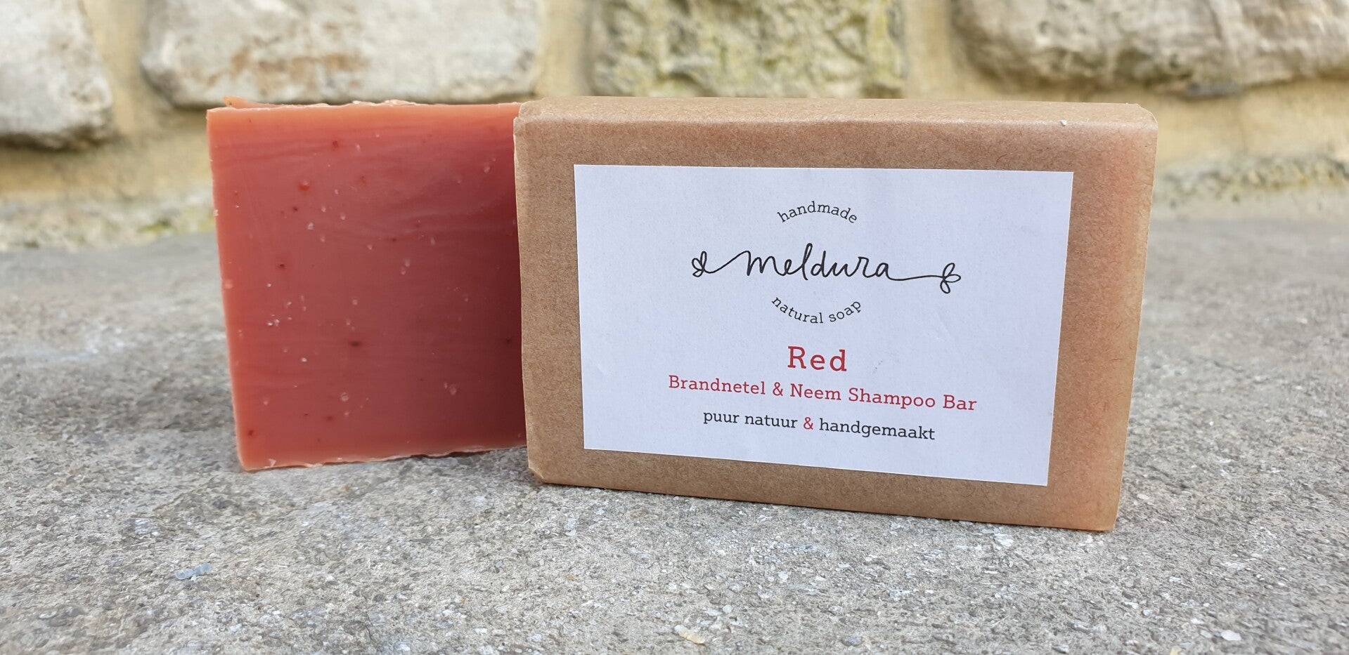 Deze rode haarzeep bevat naast kokosmelk ook een olijfoliemaceraat van brandnetel. Kokosmelk geeft deze shampoo bar een hydraterend karakter en een uitbundig schuim. Brandnetel promoot sterk en gezond haar en wordt ingezet bij vet haar of indien je last hebt van roos. De rode kleur heeft deze zeep te danken aan het gebruik van natuurlijk meekrapwortel poeder. De neem olie in deze zeep is een specialleke. Het is een wonderolie voor het haar en de hoofdhuid (vermindert roos, helpt tegen luizen, verzacht de haarschacht,...) en is eveneens zeer geschikt voor een droge en mature huid. Het creëert een beschermende laag op de huid en houdt vocht vast. Het heeft een sterke, uitgesproken geur. Je bent er dus fan van of niet.
